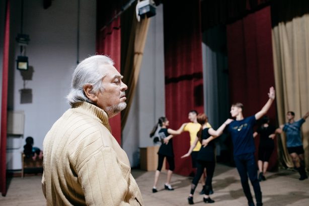 When half of those people who gathered there managed to change into their rehearsal clothes, which do not look like folk clothes at all – ordinary T-shirts, comfortable pants or shorts, a man enters the hall, without whom all this would not have happened. His name is Constantin Afanasievich Ghermec and he is a professional ballet-master.  Young people greet him.  Some of them approach him and shake hands. Others shout words of greeting.  He greets everyone with a smile and takes a place just below the stage.
