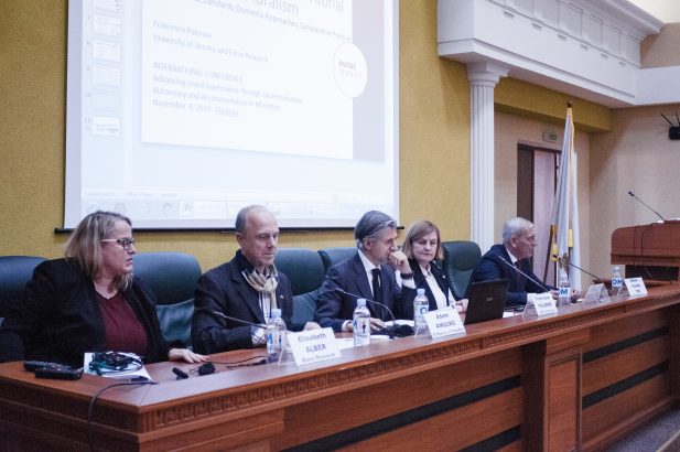 CMI also partnered with Eurac Research earlier in the Gagauzia Dialogue project to organise the four-day Autumn Academy “Decentralisation, autonomies and minority rights”. Within the Academy, Eurac experts provided numerous lectures for a diverse group of participants from Moldova (civil society, academia, media, local public administration) sharing international experiences of autonomy and decentralisation. The Autumn Academy concluded with an Academic Conference “Advancing Good Governance through Decentralisation, Autonomy and Accommodation of Minorities”. The international conference brought together a wide range of international and local experts from various disciplines and contributed to increased understanding of mechanisms of self-government and intergovernmental relations. The experts focused on common trends, challenges and difficulties of decentralisation and conflict management, presented how they play out in multi-level systems and looked at procedures and policies in place across Europe. The conference aimed to provide substantive discussion on concepts of decentralisation, devolution and autonomy as a means of managing of states’ territorial and societal diversity and promoting good governance.