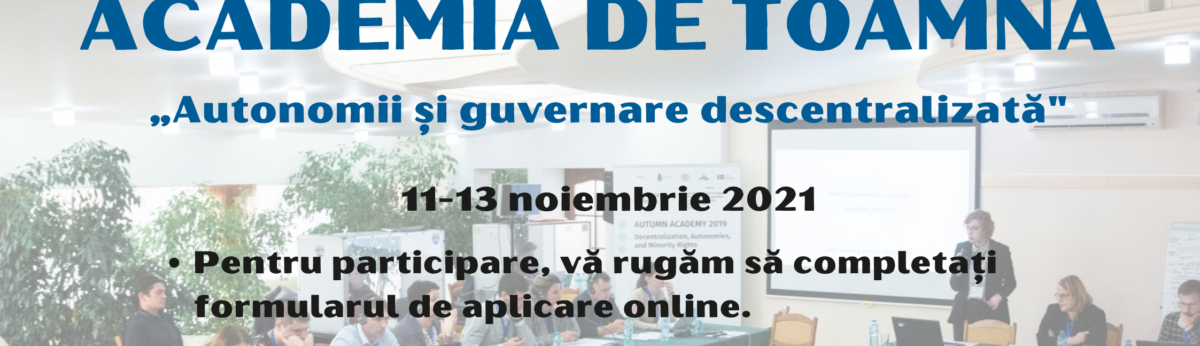 Academia de toamnă, 2021, „Autonomii și guvernare descentralizată” este un program academic intensiv, cu o durată de trei zile, 11-13 noiembrie, 2021, oferit de experții Institutului Eurac Research, Universitatea de Stat din Moldova și Universitatea de Stat din Comrat. Programul oferă persoanelor la mijlocul carierei profesionale, celor din cercul academic și studenților, care lucrează asupra subiectelor legate de autonomie, oportunitatea de a descoperi cele mai bune practici internaționale și mecanismele de guvernare a autonomiei și de a examina opțiunile potențiale pentru aplicarea acestora în relațiile dintre centru și autonomie.